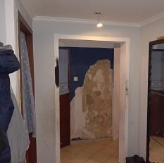 PCV), powyżej pomalowane farbą emulsyjną, w płytkach na ścianach porobione półeczki -pokoju nr 1 – wejście do pokoju z przedpokoju poprzez drzwi płytowe, ściany pomalowane
