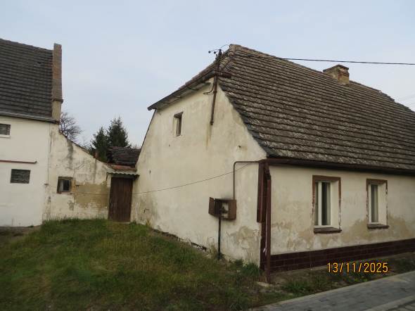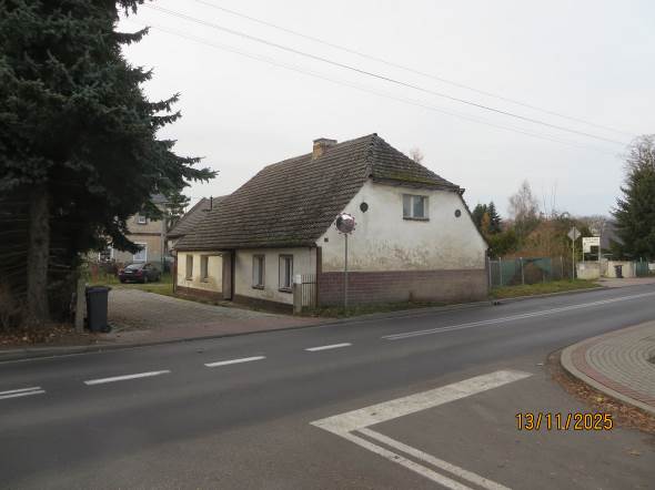 Dom jednorodzinny rok budowy sprzed 1945r. powierzchnia zabudowy 110 m2, brak podpiwniczenia, liczba kondygnacji parter i strych, powierzchnia parteru 85m2. wraz z budynkami gospodarczymi o łącznej powierzchni zabudowy 55 m2. Nieruchomość usytuowana jest w granicach działki nr 838 przy ul.Traugutta 32 w miejscowości Iłowa powiat żagański, województwo lubuskie.Dom jest nieogrzewany, nieubezpieczony zamieszkiwany przez jedną osobę -dłużnika . Budynek w bardzo złym stanie technicznym konstrukcji -wymaga remontu kapitalnego konstrukcji (tym samym stan wszelkich elementów wykończeniowych i instalacyjnych niezależnie od ich obecnego stanu – nie ma istotnego znaczenia dla wartości nieruchomości).Uwzględniając stan techniczny konstrukcji przy jednoczesnym położeniu budynku w bezpośredniej bliskości przebiegających w sąsiedztwie dróg a także wymiarach i kształcie działki ocenia się, że remont kapitalny budynku może być ekonomicznie nieuzasadniony i może być podjęta decyzja o rozbiórce budynku.Działka jest wyznaczona w nieregularnym zwartym kształcie. Teren z budynkiem mieszkalnym (południowa część działki) jest wysunięty w stosunku do północnego odcinka granicy wschodniej o ok. 2,5 m w kierunku wschodnim przez co ogranicza pas drogowy ulicy Traugutta. Budynki gospodarcze położone są w północno-zachodniej części nieruchomości gruntowej -budynki przylegają do bryły budynku mieszkalnego oraz do wschodniej ściany szczytowej budynku gospodarczego położonego na sąsiedniej nieruchomości gruntowej. Teren wolny od zabudowy to teren komunikacji wewnętrznej (teren ten stanowi część ogólnodostępnego wnętrza komunikacyjno-gospodarczego budynków nr 31 i 32) oraz teren przydomowego ogrodu (północno-wschodnia część nieruchomości gruntowej -tu na granicach zewnętrznych znajdują się ogrodzenia). Teren działki jest płaski o deniwelacji bliskiej zeru. Działka zabudowana nr 838 znajduje się w obszarze zabudowanym po zachodniej stronie ulicy Traugutta (tu dominuje zabudowa mieszkaniowa niska z przewagą zabudowy mieszkaniowej jednorodzinnej).W przedmiotowym terenie występują sieci elektryczne niskiego napięcia, sieci wodociągowe (wodociąg komunalny), sieci kanalizacyjne, gazowe i teletechniczne. Budynki gospodarcze o konstrukcji murowano-drewnianej o powierzchni zabudowy razem 55 m2.